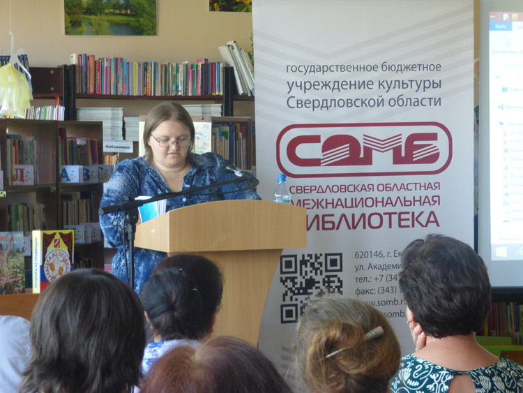 Быкова Ольга Владимировна, заведующая отделом обслуживания Свердловской областной межнациональной библиотеки, анонсировала целую палитру проектов по продвижению чтения и национальной книги, выступив с докладом на тему «Национальные литературы в контексте времени: актуальность, специфика, продвижение».