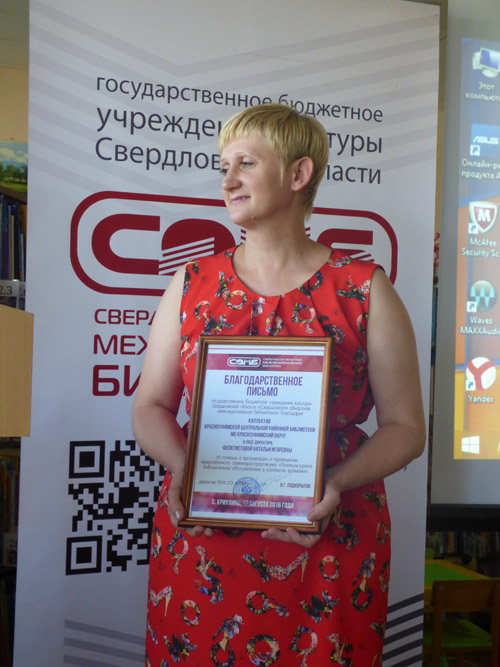 На семинаре участвовало более 50-ти специалистов муниципальных библиотек Свердловской области (МО Красноуфимский район, ГО Красноуфимск, ГО Первоуральск, Ачитский ГО, Артинский ГО). Семинар прошел продуктивно, организаторам и участникам удалось создать теплую дружественную атмосферу. Свердловская областная межнациональная библиотека выражает благодарность Красноуфимской Центральной районной библиотеке за помощь в организации и проведении семинара.