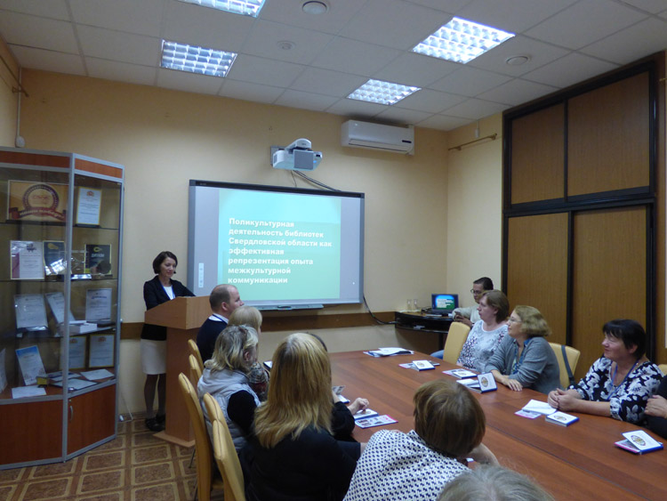 Продолжился форум работами секций по четырем направлениям деятельности в областных библиотеках. В Свердловской областной межнациональной библиотеке работала секция «Поликультурное библиотечное обслуживание населения».