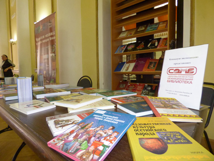 СОМБ представила выставку из своих фондов «Уральская мозаика: культура народов Урала». Экспозиция включала в себя редкие издания о многообразии народов, проживающих на территории Урала, сведения об их местах обитания, этнической и этнополитической истории, хозяйственной деятельности и занятиях, культуре, семье и семейных отношениях, обычаях и обрядах, а также разговорники на различных языках народов Урала.