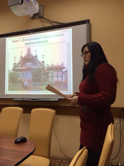 Завершилось мероприятие электронной презентацией «Семь чудес Свердловской области», рассказывающей о достопримечательностях родного края. Это Верхотурский кремль (возведен в начале XVIII в.), Невьянская наклонная башня, Дом кузнеца С. Кириллова в деревне Кунара (выдающийся образец деревянного зодчества), природный парк «Оленьи ручьи», родник влюбленных в селе Коптелово, музей-заповедник деревянного зодчества под открытым небом в Нижней Синячихе и великие люди Урала (В.Н. Татищев, Е.А. и М.Е. Черепановы, Н.К. Чупин, А.П. Карпинский, Б.В. Дидковский, Д.Н. Мамин-Сибиряк, А.С. Попов, П.П. Бажов, Б.Н. Ельцин).
