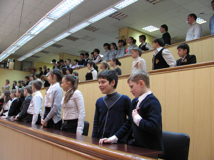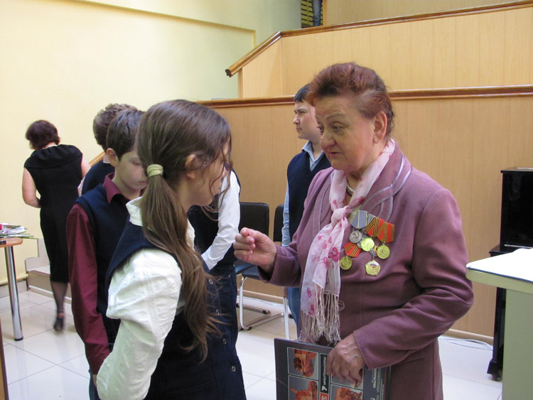 Внимательно слушали ребята рассказы живых свидетелей нашей истории, задавали им много вопросов. Дети вручили почетным гостям цветы и поздравительные открытки, сделанные своими руками.