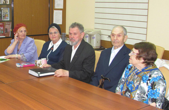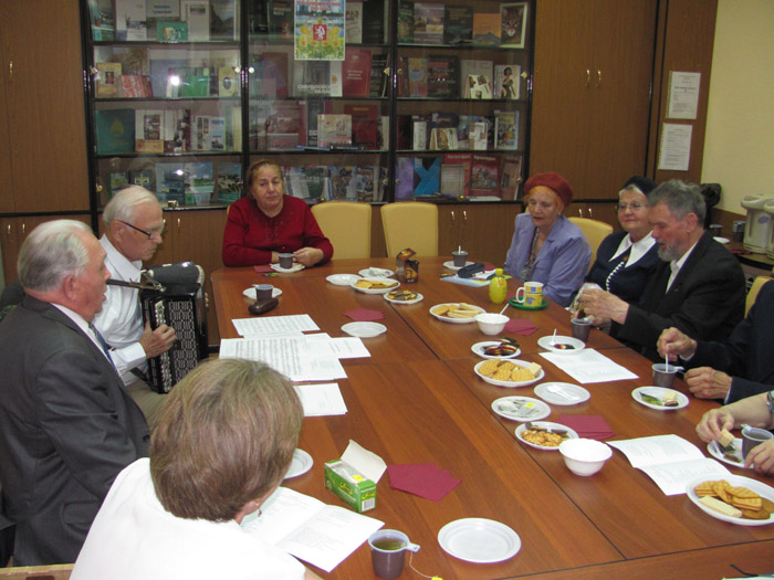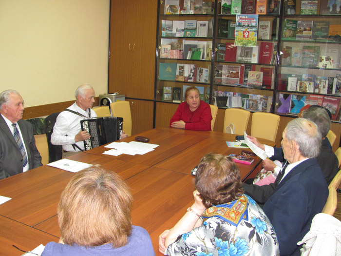 Продолжилась встреча выступлением участников клуба «Вдохновение»: прозвучали стихи, а песни под баян с удовольствием пели все участники (аккомпанировал В.И. Салчинский).