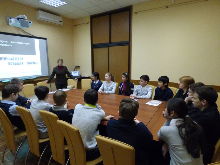 «Маленькие герои большой войны», посвященного Дню памяти юного героя-антифашиста. День юного героя-антифашиста отмечается в мире 8 февраля с 1964 года, который утвержден был очередной Ассамблеей ООН, в честь погибших участников антифашистских демонстраций – французского школьника Даниэля Фери (1962) и иракского мальчика Фадыла Джамаля (1963). Особое внимание было уделено пионерам-героям Великой Отечественной войны.