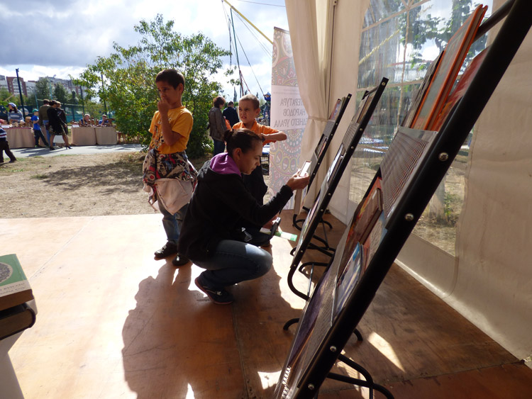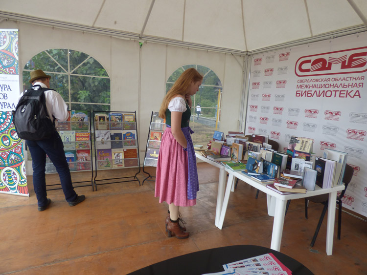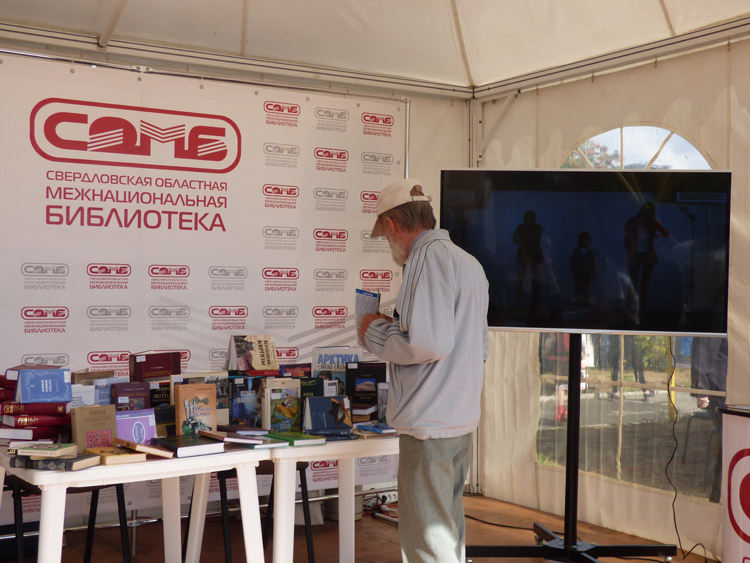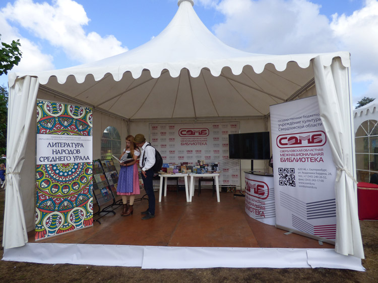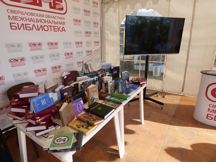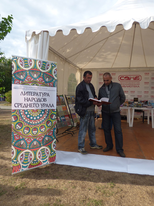 Свердловская областная межнациональная библиотека, по традиции, представила книжную экспозицию из своих фондов. Книжная выставка «Литература народов Среднего Урала» была, условно, разделена на 3 основных раздела, посвященных народам, проживающим на Урале. Это этническая и этнополитическая история народа, сведения об их местах обитания, хозяйственной деятельности и занятиях. Следующий раздел посвящен фольклору. Здесь представлены уникальные издания народного эпоса – сказки и предания, песни, загадки и частушки, а также яркие красочные издания, раскрывающие все аспекты традиционной культуры и творчества народов Урала. Заключительный раздел выставки был посвящен художественной литературе на языках народов Урала. Здесь были представлены такие писатели как Чингиз Айтматов, Василь Быков, Расул Гамзатов, Муса Джалиль и множество других любимых всеми писателей и поэтов.