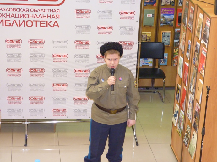 17 марта в Свердловской областной межнациональной библиотеке состоялась презентация выставки печатных изданий по истории и культуре казачества из фондов библиотеки «Казачий круг» Региональной общественной организации Свердловской области «Общество русской культуры “Отечество”» – «С нами – братство, знамена и песни!».