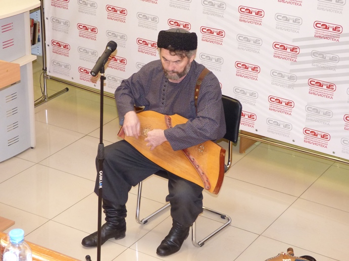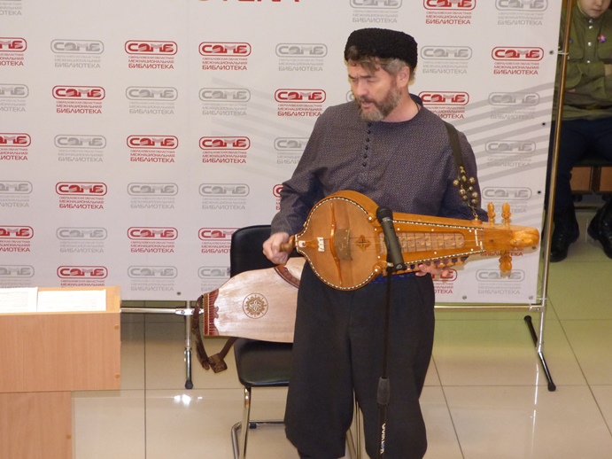 Свое творчество представил народный музыкант, казак – Бунтов Евгений Владимирович, заворожив зрителей звучанием гуслей и казачьей колёсной лиры.