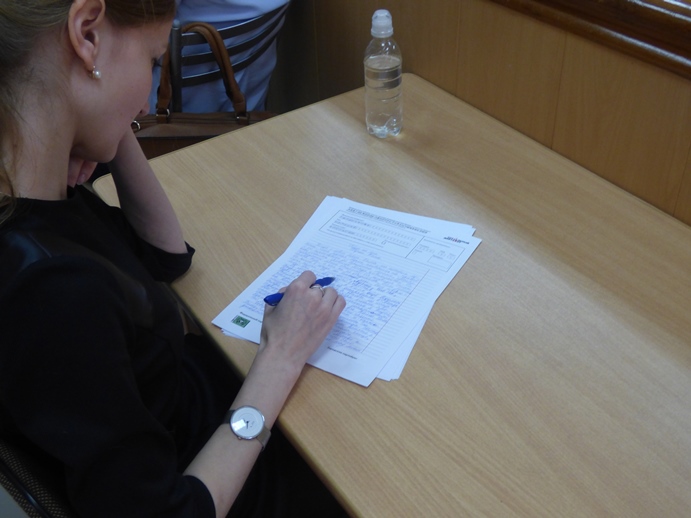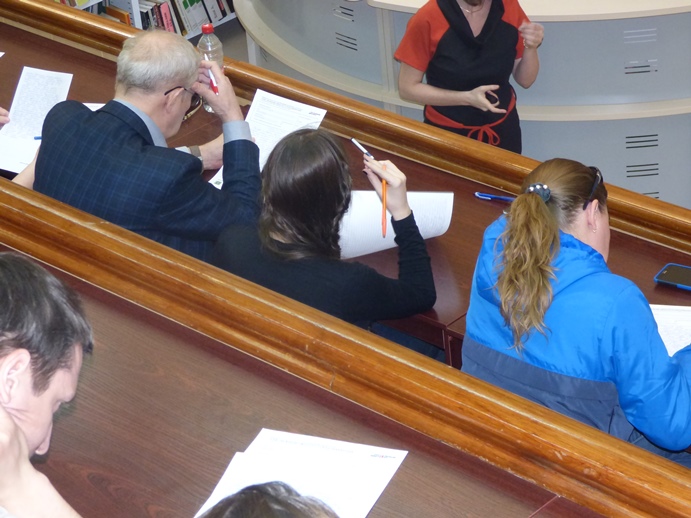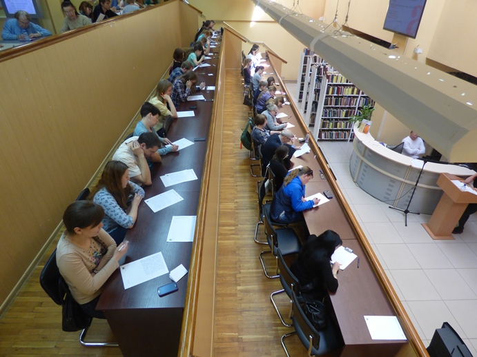 В Межнациональной библиотеке диктант уже завершился, и филологи приступили к проверке. Всего в этом году проверить свою грамотность пришло 45 человек. Диктатором выступила кандидат филологических наук, доцент, декан факультета иностранных языков Уральского гуманитарного института – Ольга Леонидовна Сарафанова.