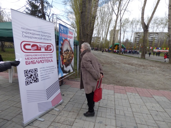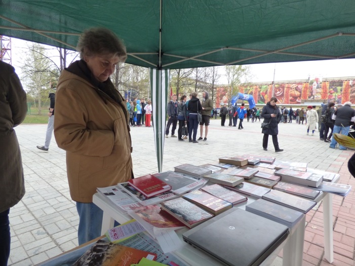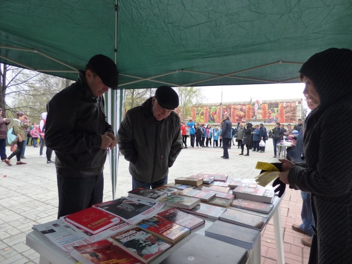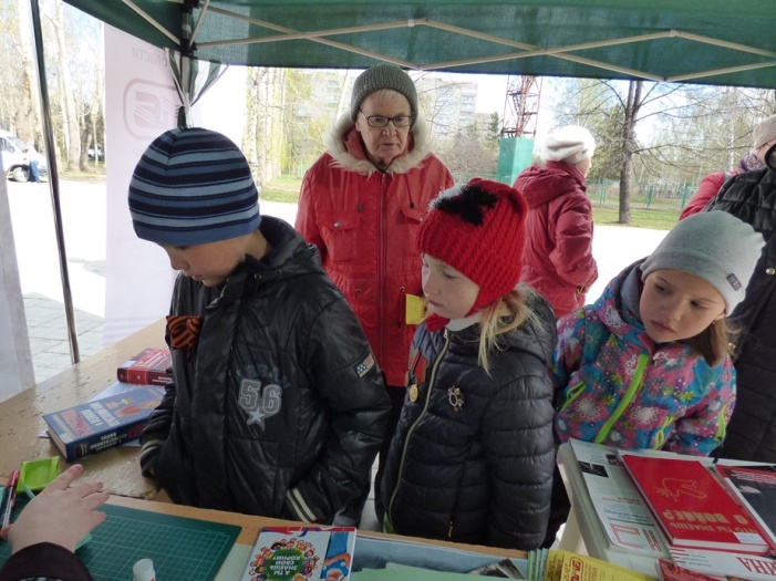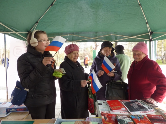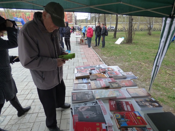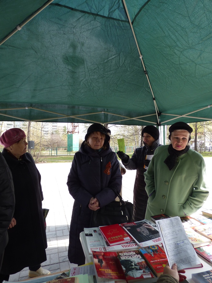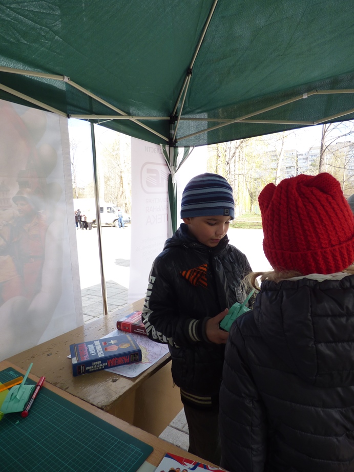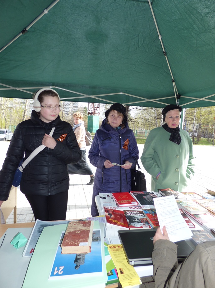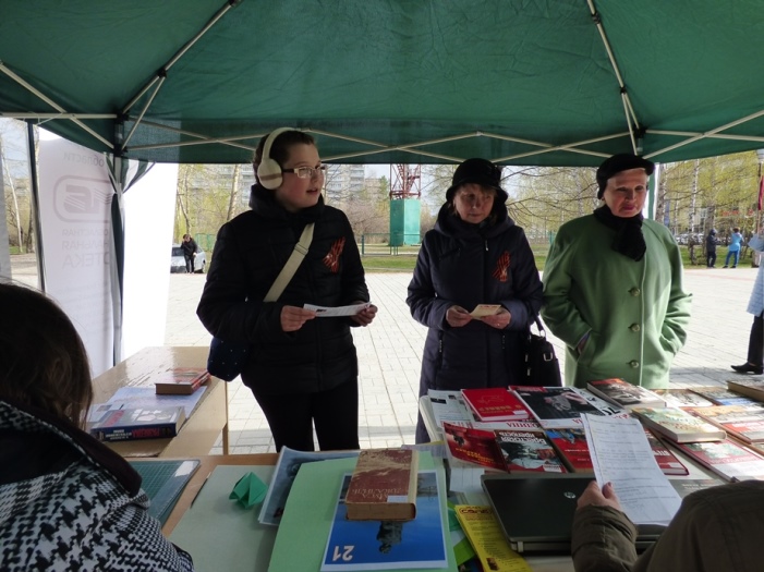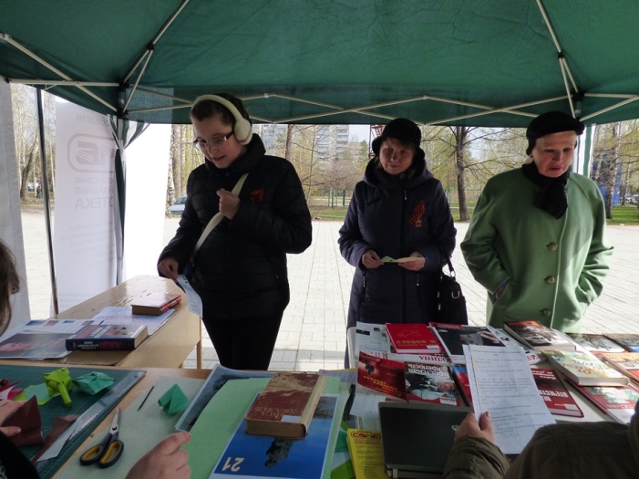 В этот раз мероприятие прошло не в стенах библиотеки, а в парке по ул. Чкалова, где 5 мая проходило праздничное народное гуляние «Минувших дней святая память», организованное культурно-досуговым центром «Дружба».
