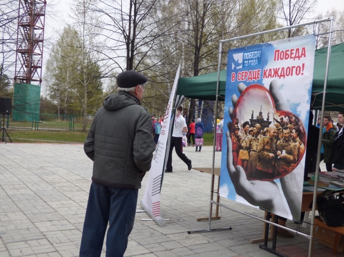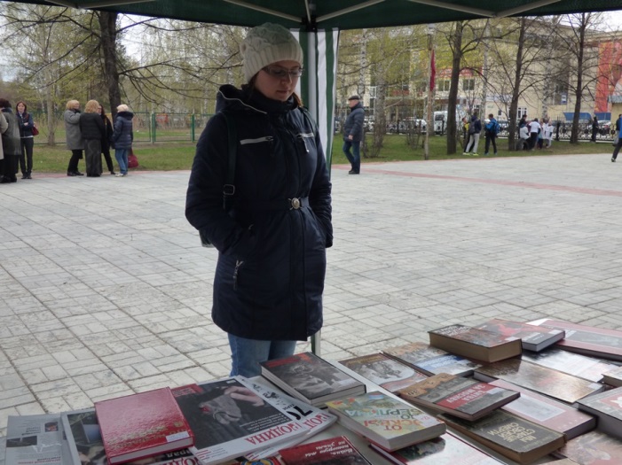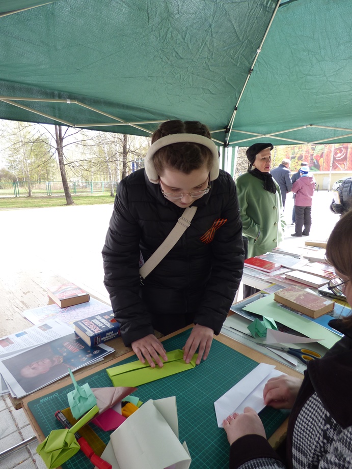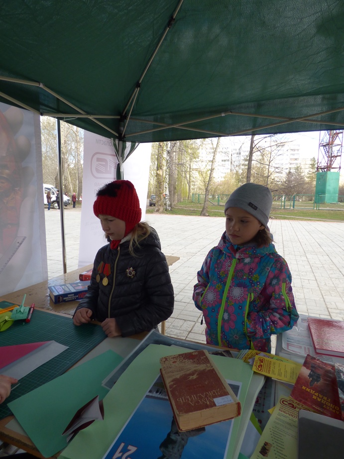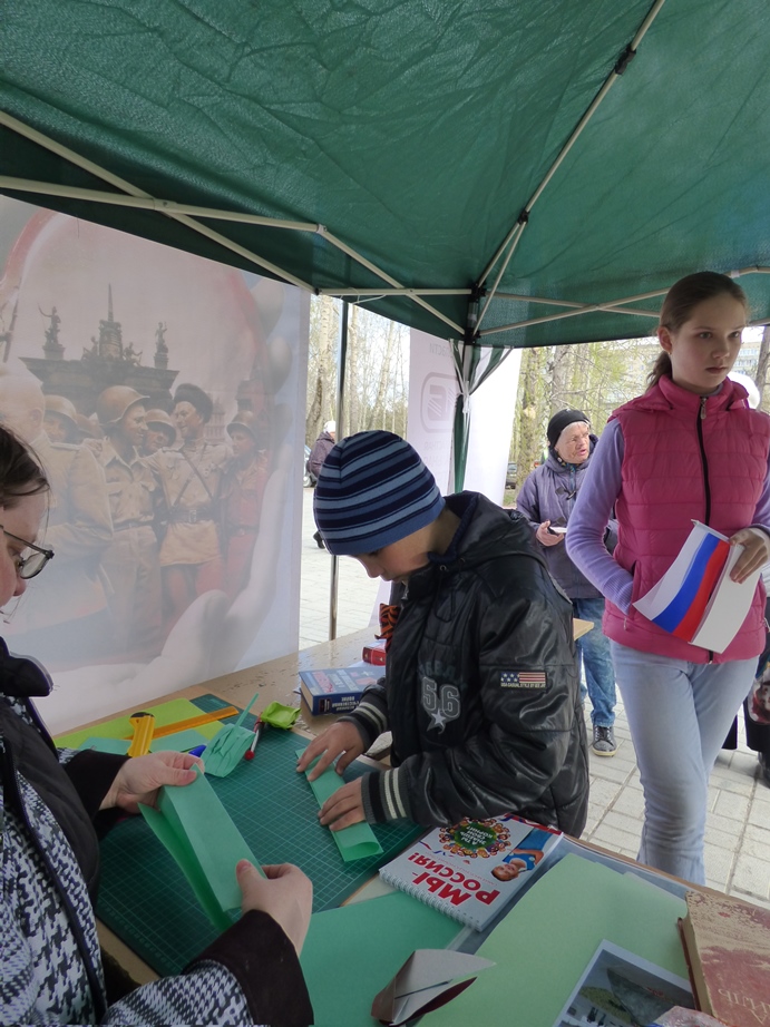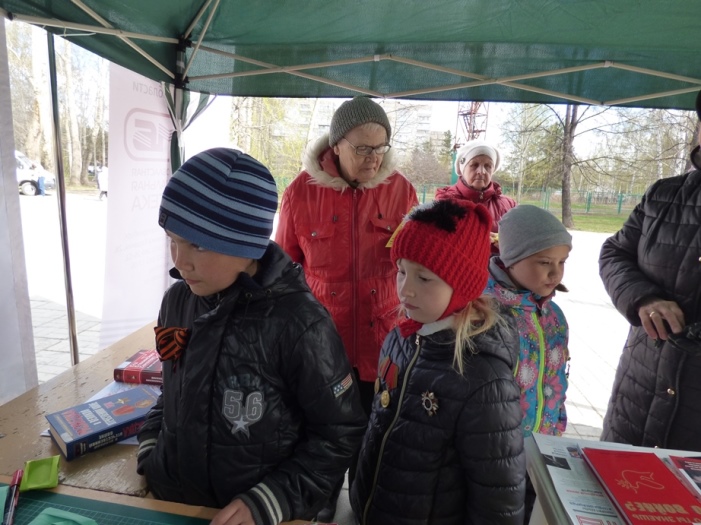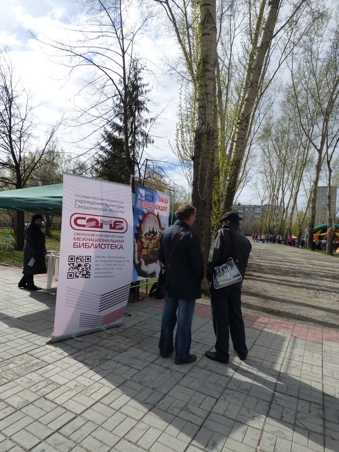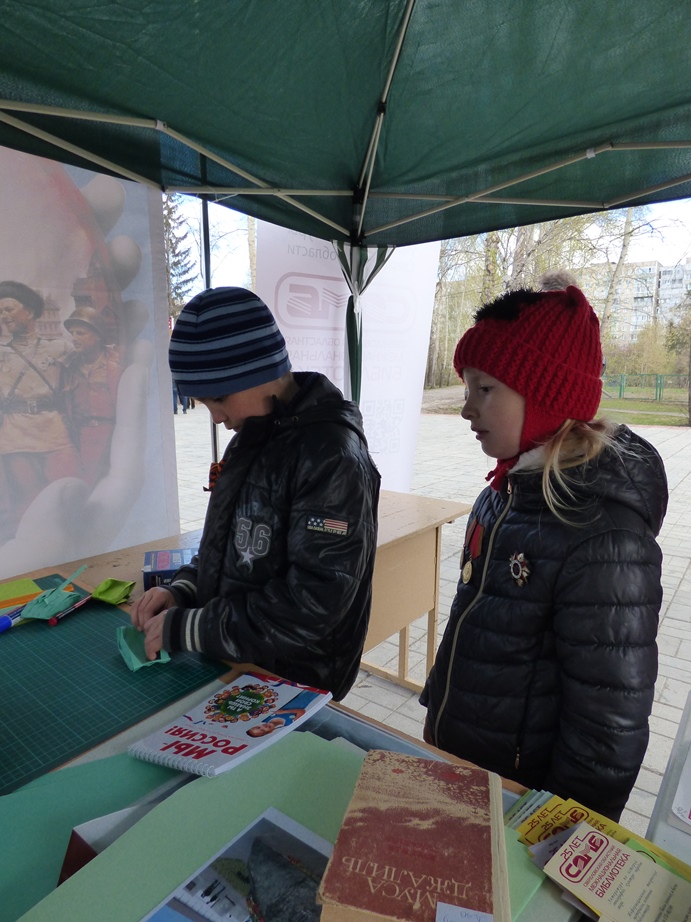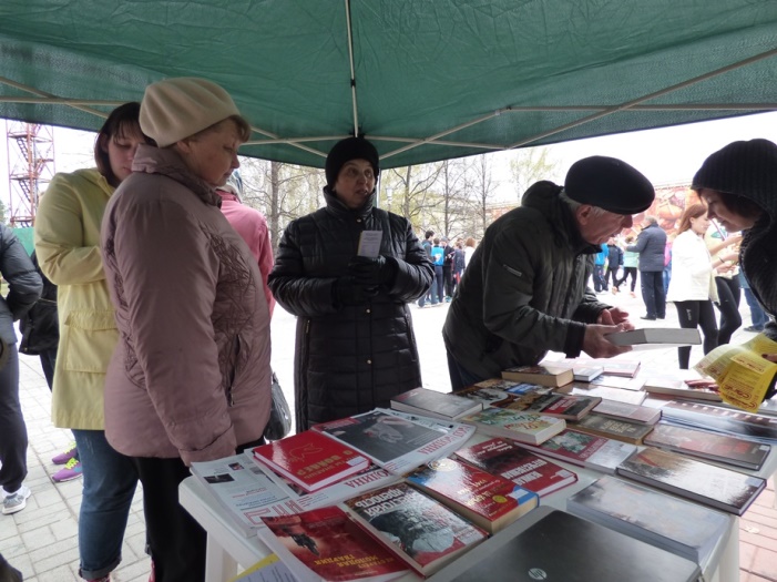 В этот раз мероприятие прошло не в стенах библиотеки, а в парке по ул. Чкалова, где 5 мая проходило праздничное народное гуляние «Минувших дней святая память», организованное культурно-досуговым центром «Дружба».