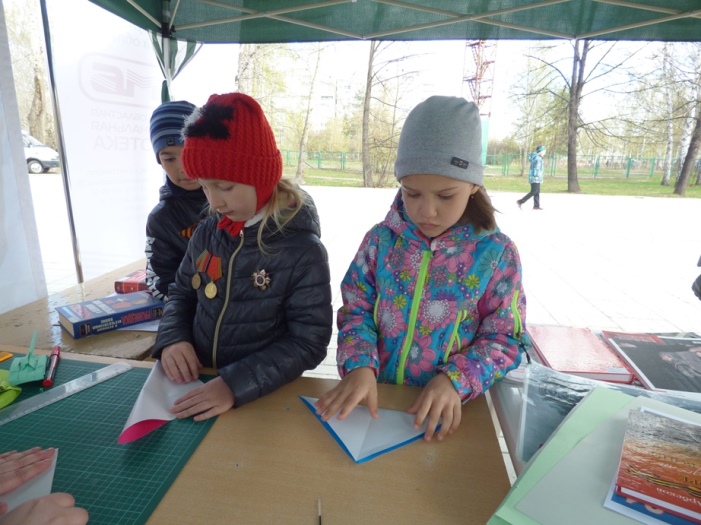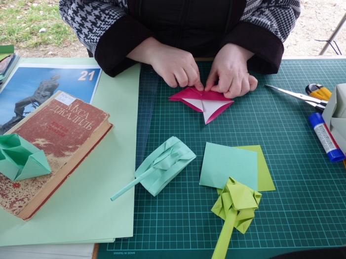 Также гости могли поучаствовать в мастер-классе по оригами и сложить из бумаги танки, кораблики и самолетики.