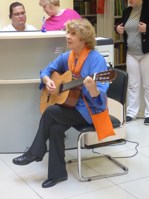 Также для гостей выступила артистка с одновременным нарушением слуха и зрения Кирьянова Татьяна Павловна с веселыми зажигательными песнями.