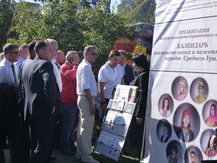 Директор Межнациональной библиотеки Ольга Владиславовна Кузнецова презентовала проект «Календарь знаменательных и памятных дат народов Среднего Урала» Губернатору Свердловской области Евгению Владимировичу Куйвышеву. «Наш проект направлен на распространение среди всех слоев населения и всех национальных групп идей духовного единства, межнационального и межконфессионального согласия, конструктивного кросс-культурного диалога; создание условий для формирования комфортной и дружественной среды межнационального, межкультурного и межконфессионального взаимодействия на территории Среднего Урала» – рассказала она.