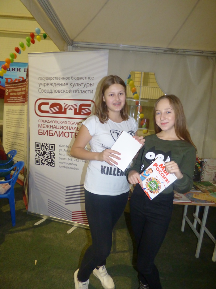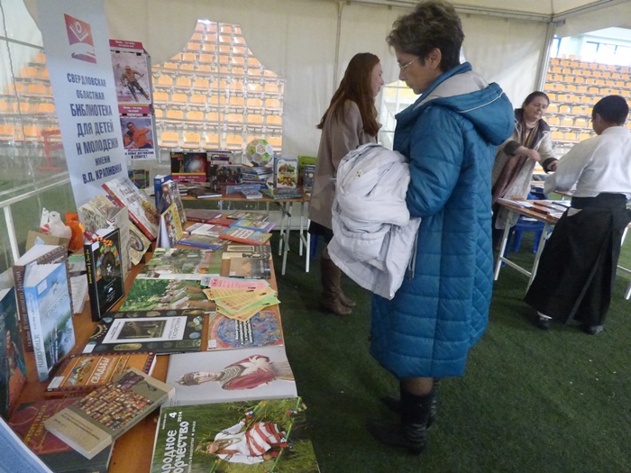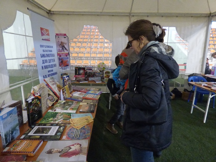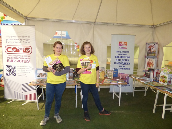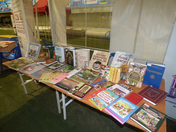 В работе площадки от Министерства культуры Свердловской области приняла участие и Свердловская областная межнациональная библиотека. Мы представили свою выставку «Народы России: досуг, творчество, культура». Помимо знакомства с литературой из фондов библиотеки, все желающие могли проверить свои знания в области культуры народов, проживающих в России.