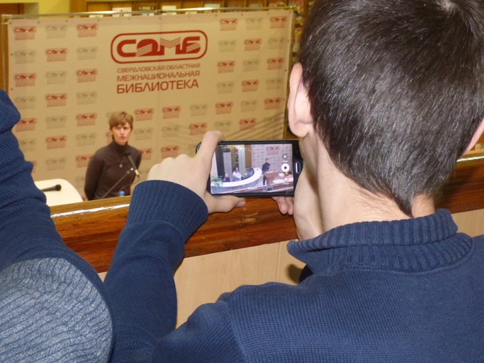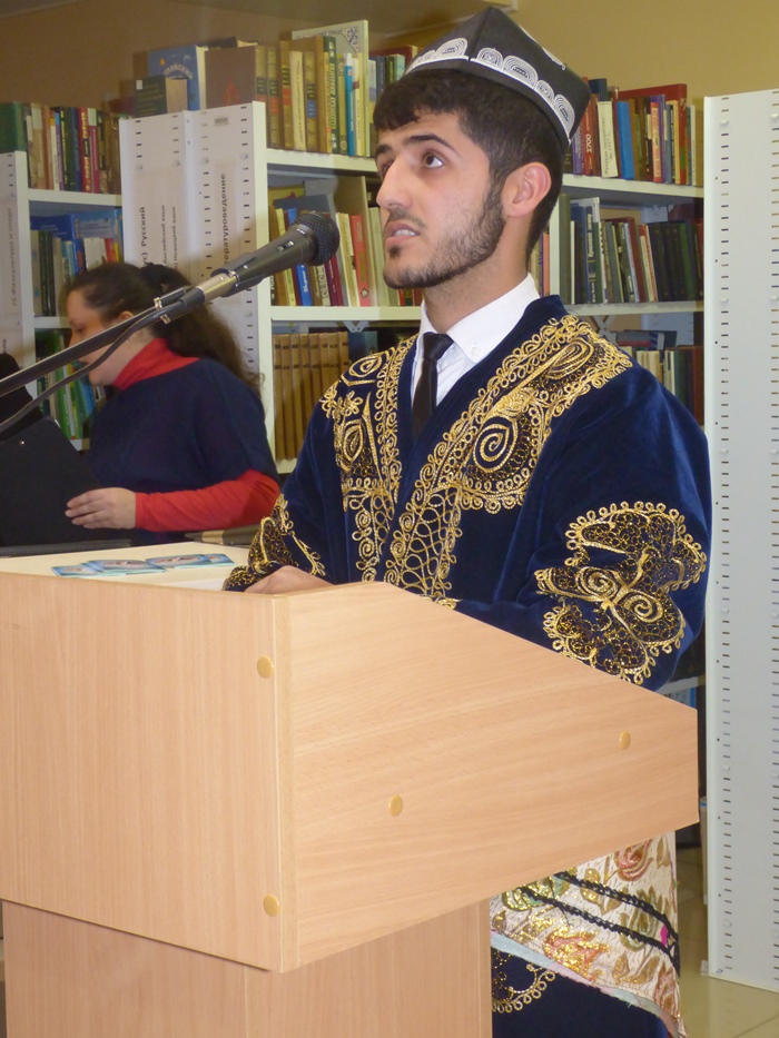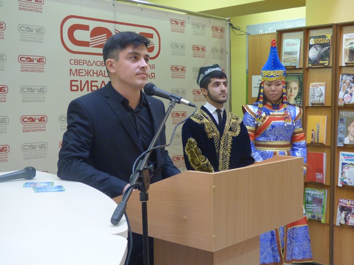 День чтения продолжился уже традиционным марафоном национальной литературы «Книги в стиле ЭТНО». Лидеры и представители национально-культурных объединений Екатеринбурга и Свердловской области поделились своими литературными предпочтениями и прочли эпизоды из своих любимых произведений на родном языке. В этот раз мы услышали поэтические и прозаические произведения на башкирском языке, на русском, украинском, татарском, таджикском. Впервые в стенах библиотеки прозвучал тувинский язык, а также иврит – сравнительно молодой язык, восстановленный менее ста лет назад.