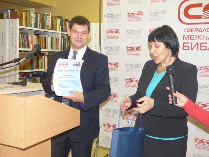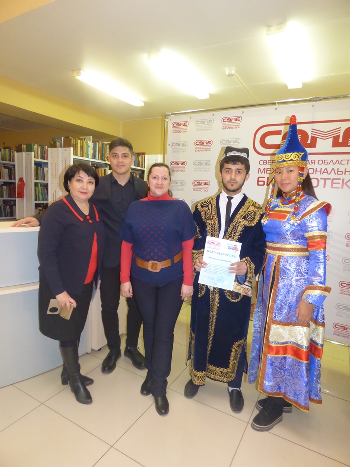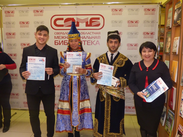 Свердловская областная межнациональная библиотека выражает благодарность Региональной общественной организации «Свердловский областной башкирский центр», Екатеринбургскому обществу русской культуры «Отечество», Украинской национально-культурной автономии г. Екатеринбурга, а также Свердловскому областному медицинскому колледжу за помощь в организации и проведении III областной (открытой) акции тотального чтения «День чтения» в Межнациональной библиотеке.