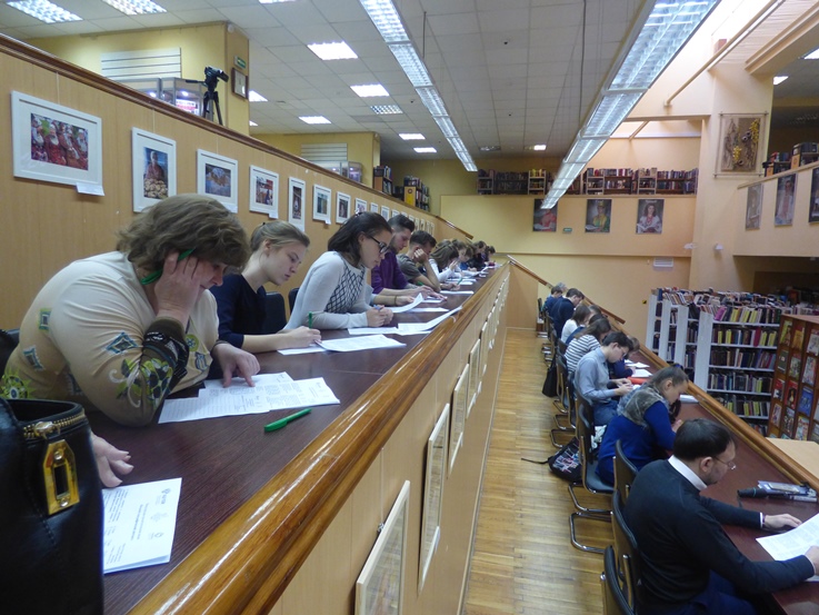 В проверке знаний приняло участие 45 человек — это не только читатели библиотеки, но и, не смотря на каникулы, учащиеся старших классов и студенты Свердловского областного колледжа искусств и культуры.