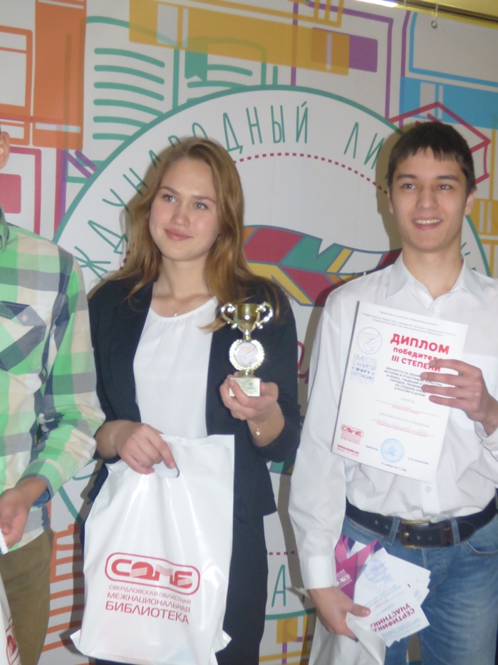 Свердловская областная межнациональная библиотека выражает благодарность жюри – Нагдалян Нонне Альбертовне, руководителю Отдела образовательных проектов и программ Отделения туризма и краеведения ГАУДО СО "Дворец молодёжи", Ленковской Елене Эдуардовне, искусствоведу, арт-критику, автору историко-приключенческих и познавательных книг для детей, а так же благодарим педагогов школ, руководителей команд за отличную подготовку учащихся.