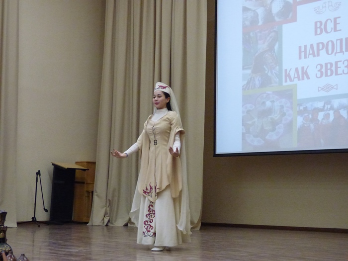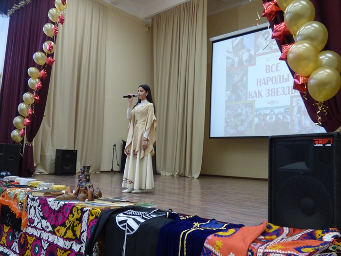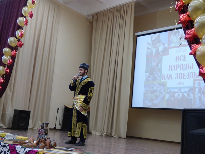 19 декабря в Свердловском областном медицинском колледже состоялось заключительное культурно-просветительное мероприятие для детей и молодежи МО Свердловской области, в рамках проекта «Все народы как звезды». Всех гостей поприветствовал председатель Свердловской региональной ассоциации общественных объединений «Ассоциация национально-культурных объединений Свердловской области» Мирзоев Фарух Мамадалиевич, директор государственного бюджетного профессионального образовательного учреждения «Свердловский областной медицинский колледж» Левина Ирина Анатольевна и заместитель директора по основной деятельности государственного бюджетного учреждения культуры Свердловской области «Свердловская областная межнациональная библиотека» Колосов Евгений Сергеевич. И вот на сцене эти юные «звезды» в национальных костюмах, то с задорными песнями, то с зажигательными танцами, звучат стихотворения на родном языке о маме, о Родине. Перед зрителем раскрывается все разнообразие и богатство культур народов России.