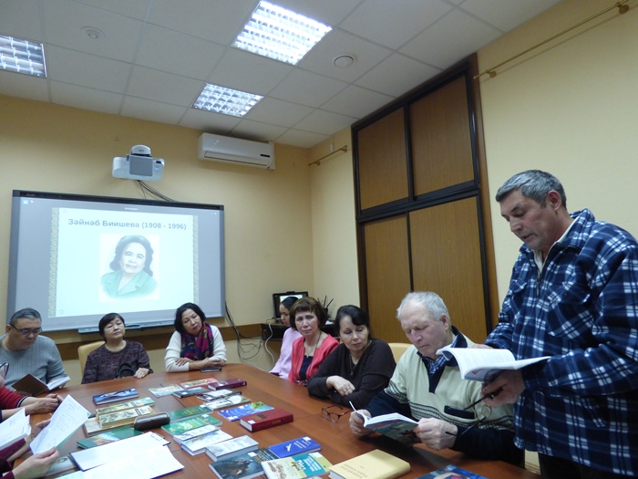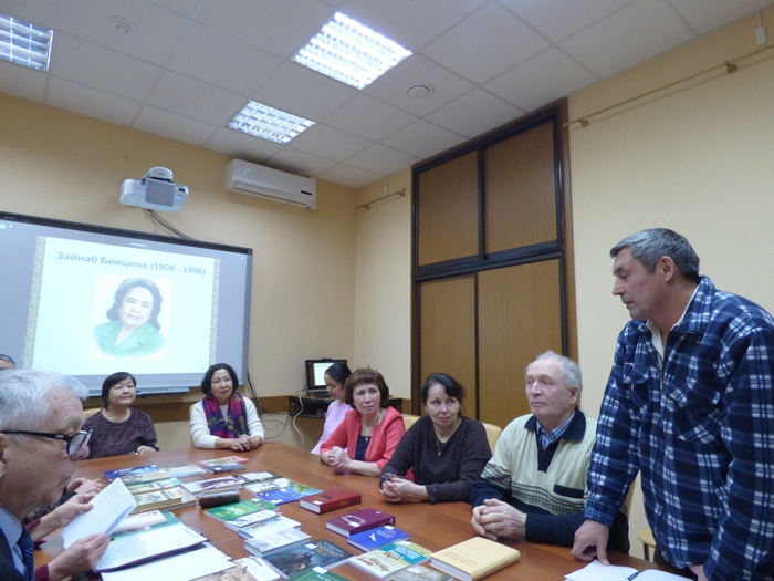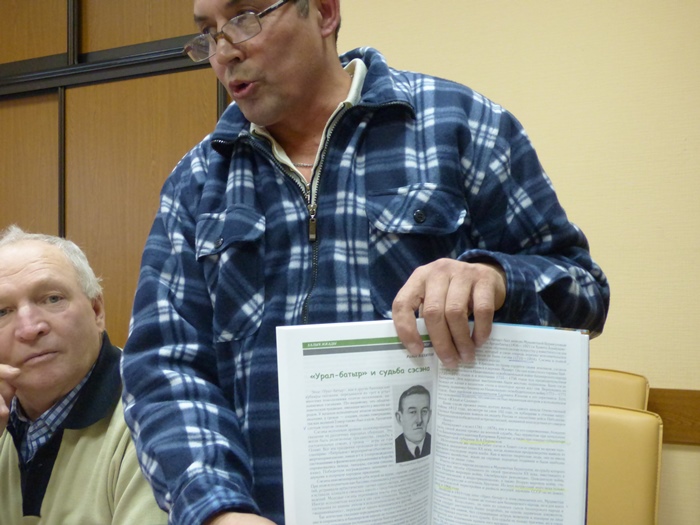 После декламации стихотворений Зайнаб Биишевой разговор зашел о башкирском народном эпосе «Урал-Батыр», который является одним из важнейших литературных памятников Башкортостана. Мужавир Сагадеевич Буранбаев, краевед и писатель, рассказал о том, какая работа велась по сбору сказаний, вошедших в эпос.