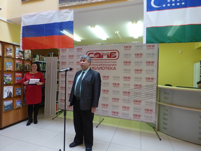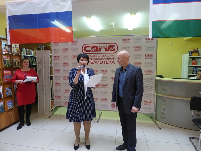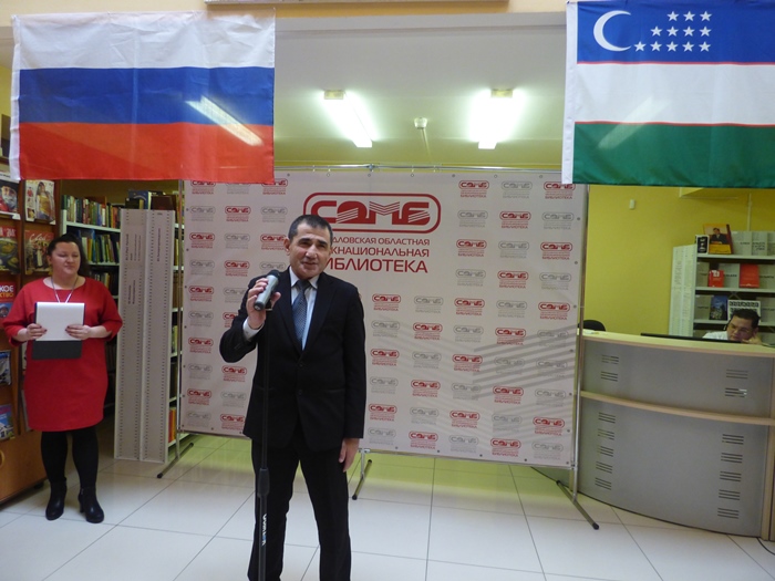 Поприветствовать гостей мероприятия пришли заместитель начальника Управления по межнациональным отношениям Департамента внутренней политики Губернатора Свердловской области и Правительства Свердловской области, кандидат философских наук, Павел Евгеньевич Суслонов; главный специалист отдела музейной, библиотечной, культурно-досуговой деятельности и межведомственных программ Министерства культуры Свердловской области Армина Кареновна Тухбатова, заместитель председателя Ассоциации народов Среднего Урала Алла Борисовна Домнич, а также один из организаторов мероприятия – Председатель Свердловской региональной общественной организации «Общества дружбы «Урал-Узбекистан» Абид Шакирович Туратов.