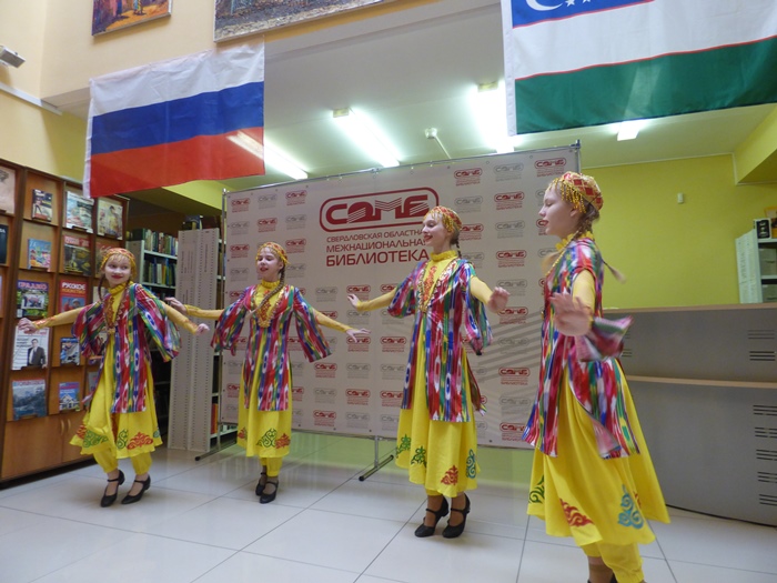 Мягкость, плавность и выразительность, легкий скользящий шаг и оригинальные движения узбекского танца продемонстрировал Ансамбль народного танца «Малахит» Екатеринбургской детской школы искусств №11 имени Е.Ф. Светланова, (художественный руководитель Валентина Александровна Лифашина). В течение вечера звучали замечательные песни в исполнении Ихтиёра Алаева.