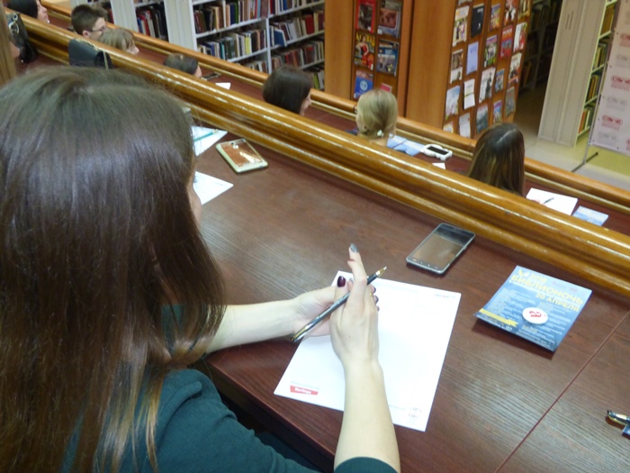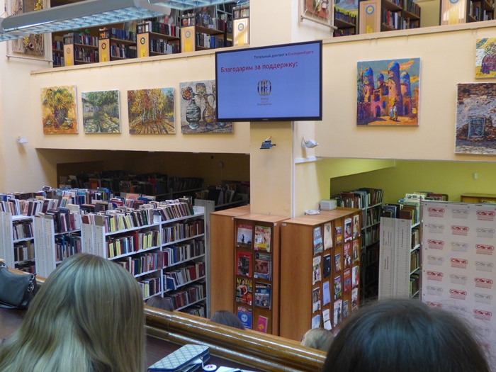 Межнациональная библиотека уже традиционно открыла свою площадку для желающих поучаствовать в образовательной акции. В роли диктатора в нашей библиотеке выступила Евгения Михайловна Перлова – поэт, писатель, переводчик, дипломант всероссийских и международных литературных конкурсов, участник международных литературных фестивалей и семинаров. Лауреат конкурса «Творчество молодых авторов» (Екатеринбург). Член Товарищества детских и юношеских писателей России, член Содружества детских писателей Екатеринбурга, член литсовета Международной детской литературной премии имени писателя В. П. Крапивина.