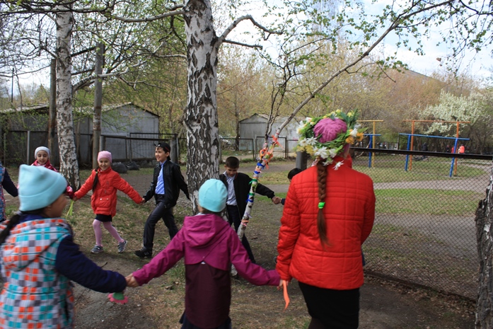 Так, в завершении учебного года для детей была организована игровая программа, посвященная календарно-обрядовым традициям русского народа. Библиотека совместно со специалистами Центра традиционной народной культуры Среднего Урала познакомили ребят с праздником Троицы – с одним из красивейших праздников в народном календаре славян. Вместе с ребятами были проведены обряды «кумления» и «завивания берёзки». Дети, загадывая желания, украшали берёзку яркими ленточками, водили вокруг нее хороводы, пели песни и играли в подвижные народные игры.