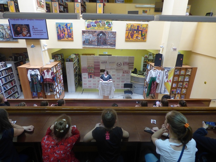 22 мая в Межнациональной библиотеке прошло мероприятие «Сердце вьет узоры тонкие», посвященное Дню славянской письменности и культуры.