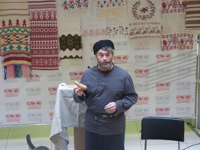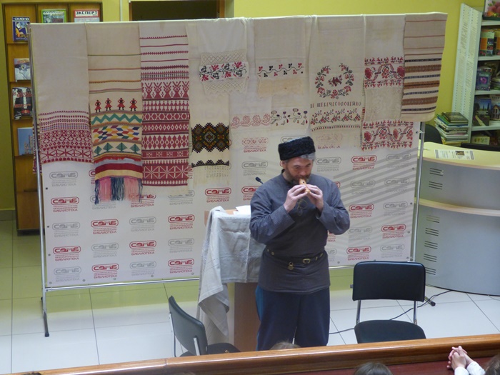 Темой мероприятия в Межнациональной библиотеке стала не только история праздника, но и другие грани культуры славянского народа – гости познакомились с особенностями народного костюма и вышивки, о чем рассказали представители Общества Русской Народной Культуры «Большая Медведица» – Светлана Пигарева и Полина Когай. Послушали песни на украинском языке в исполнении заслуженного артиста Украины – Егора Славина (Местная общественная организация «Украинская национально-культурная автономия» г. Екатеринбурга), и заместитель по казачьей культуре Атамана Исетской линии Оренбургского казачьего войска Евгений Владимирович Бунтов сыграл на различных инструментах – свистухе, свирели, калюке и гуслях.
