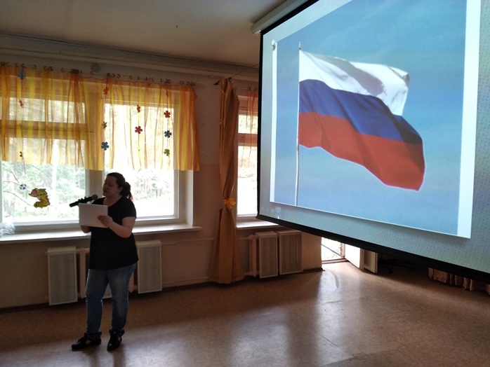 Мальчики и девочки рассматривали изображения стяга, знамени, флага, который менялся на протяжении столетий, отражая этапы развития и изменения России. Большой ажиотаж вызвало обсуждение цветового значения полос флага, каждый хотел высказать свое мнение. Дети отвечали на вопросы викторины, декламировали стихи, вспомнили, где можно увидеть российский флаг, а после высказали мнение, что у российского флага очень интересная история. И это они отразили в своих рисунках.