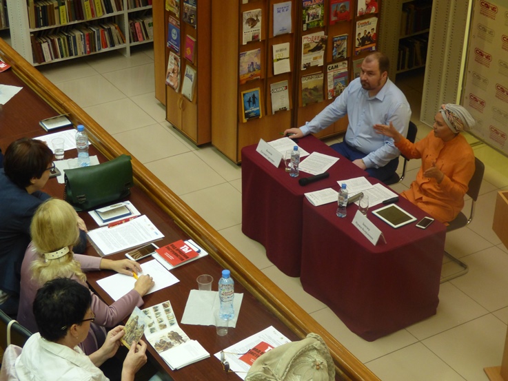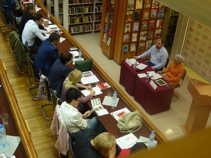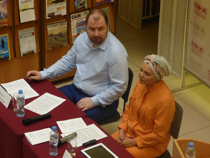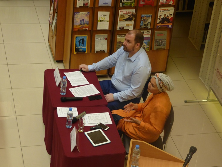Далее, в формате дискуссии, выступающие говорили о проблемах, которые мешают понять друг друга местным и приезжим, часть из которых стремится и получает гражданство России, становятся нашими соотечественниками. При этом, самой главной проблемой, по общему согласию присутствовавших, является знание или незнание русского языка. Вадим Рудаков – редактор сайта Экспертного клуба «Урал-Евразия» отметил, что запрос на русский язык в Средней Азии не упал, а только возрос. При этом страны региона испытывают острую нехватку в учителях русского языка и в учебной и методической литературе. Исполнительный директор нашего Экспертного клуба Константин Погорельский после одной из командировок в Таджикистан договорился с библиотекой Уральского федерального университета о передаче 600 книг русской и зарубежной классики этой республике. Транспортировать книги из Екатеринбурга до Душанбе нам помогли военнослужащие Центрального военного округа силами авиации Министерства обороны. Дальше книги были распределены Представительством Россотрудничества в Республике Таджикистан по образовательным учреждениям страны. Министерство обороны готово и в дальнейшем помогать в отправке таких гуманитарных грузов до своих баз в Средней Азии, главное – организовать сбор книг здесь.