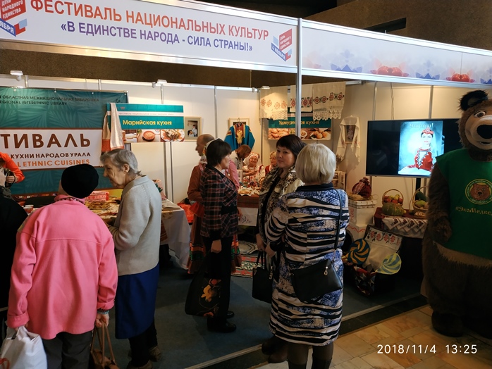 В рамках мероприятия Межнациональной библиотекой был представлен Фестиваль национальной кухни народов Среднего Урала, на котором представители национально-культурных объединений региона рассказали гостям праздника об истории появления и особенностях приготовления национальных блюд русской, татарской, башкирской, марийской, удмуртской, чувашской, узбекской, казахской, украинской кухонь и уральской кухни в целом.