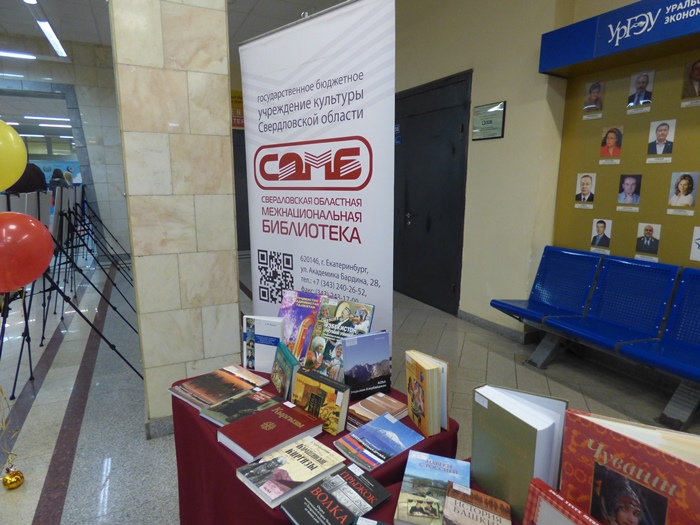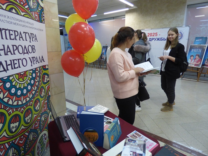 Свердловская областная межнациональная библиотека также приняла участие в Съезде народов Урала, представив свои проекты: «Читай-2018: Читаем вместе»; социальную рекламу: шесть видеороликов, формирующих уважительное отношение к представителям различных национальностей, которые проживают в Свердловской области, направленных на профилактику экстремизма и поддержание позитивного имиджа Свердловской области как региона культуры, мира и толерантности; а также традиционную книжную экспозицию, в которую вошли издания из фондов библиотеки, посвященные истории и этнографии народов Урала.