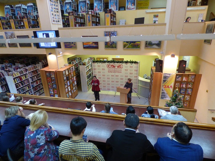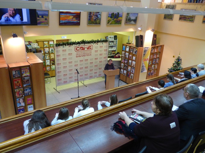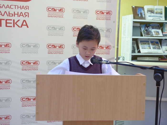 На встречу были приглашены учащиеся школ и представители национально-культурных объединений Свердловской области. И наша библиотека на несколько часов превратилась в уютную литературную гостиную. Гости познакомились с жизненным и творческим путем Чингиза Айтматова, была представлена электронная презентация к программе, школьники читали отрывки из произведений писателя. В заключении мероприятия гости посмотрели отрывок из спектакля «Манкурт» на киргизском языке, поставленный по роману писателя «И дольше века длится день».