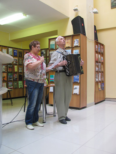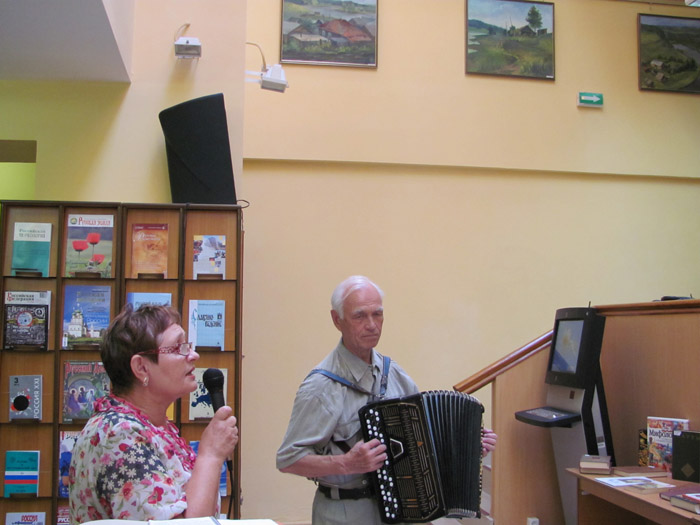 Не оставил читательниц равнодушными музыкальный подарок от давнего друга библиотеки Владимира Ивановича Салчинского. Под его аккомпанемент были с радостью исполнены всеми любимые песни.