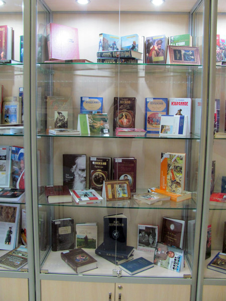 Порадует своим разнообразием стенд, посвященный русским классикам.