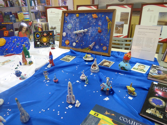 Специально ко Дню космонавтики в Межнациональной библиотеке студия «Волшебная глина» под руководством Шурковой Татьяны Николаевны подготовила выставку художественного творчества «Таинственный космос в фантазиях детей». Выставка будет работать до 18 апреля.