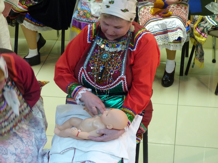 Какое событие в жизни людей можно назвать более таинственным, более удивительным, с которым связано столько новых надежд, но вместе с тем и опасений, и тревог? Это рождение ребенка. Перед гостями была разыграна марийская обрядовая постановка «Рождение ребенка». В марийских родильных обрядах сконцентрирован многовековой опыт, когда каждое действие в отношении роженицы и ребенка направлено на обеспечение их безопасности, пожелание новорожденному хорошей судьбы, выражает радость и возлагает надежды на нового члена семьи.