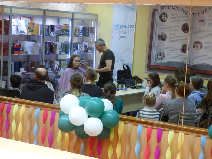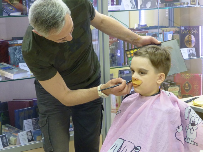 Гости от мала до велика перевоплощались в любые образы на мастер-классе по театральному гриму под руководством профессионального гримера Свердловского театра музыкальной комедии Катенина Рудольфа Борисовича. Он поделился знаниями о том, кто придумал гримировать актеров, какими инструментами пользуется гример, какие краски можно использовать для рисования на лице.