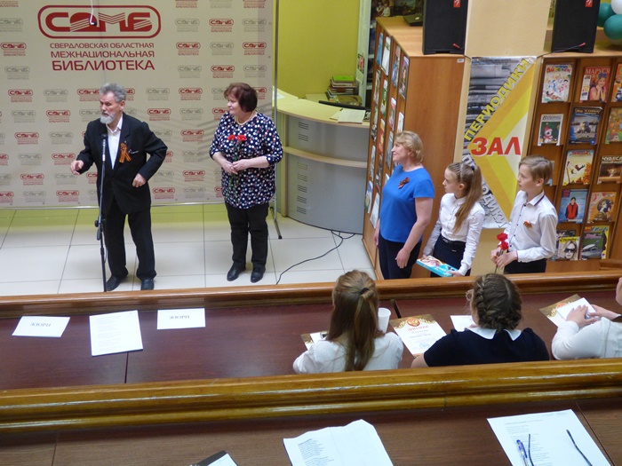 В завершении фестиваля учащиеся посмотрели фильм «Свояки» по рассказу Василя Быкова и поздравили с Днем Победы ветеран труда, офицера в отставке Жукова Виктора Григорьевича. В благодарность, Виктор Григорьевич прочитал стихи своего собственного сочинения.