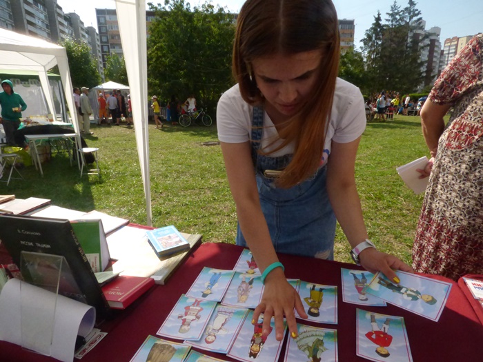 Директор библиотеки Ольга Ивановна Калинина в составе жюри фестиваля оценивала выступления команд трудовых отрядов, участвующих в конкурсной программе. Команды представили жюри визитные карточки народов, проживающих в России. Воспитанники трудовых отрядов продемонстрировали народные танцы, элементы традиционных костюмов и исполнили народные песни.