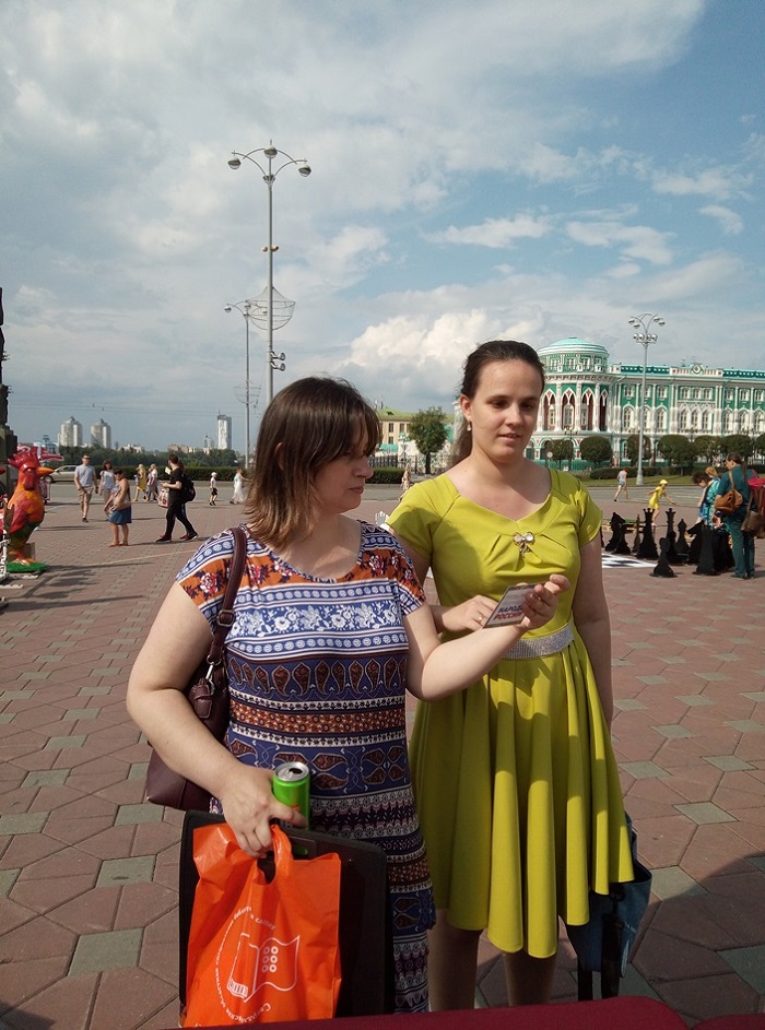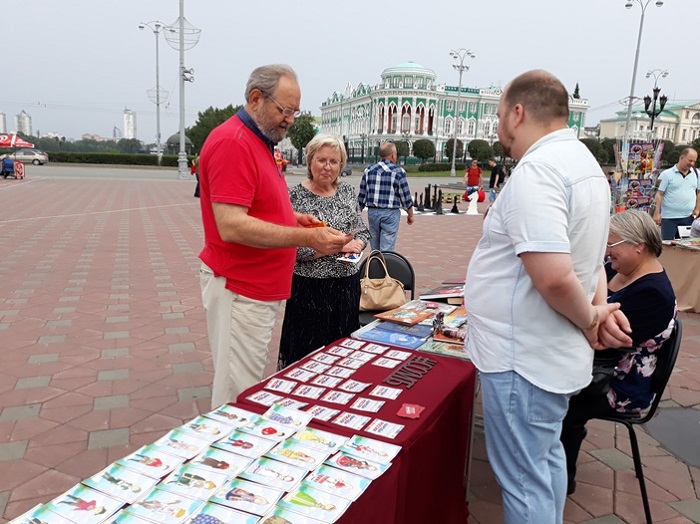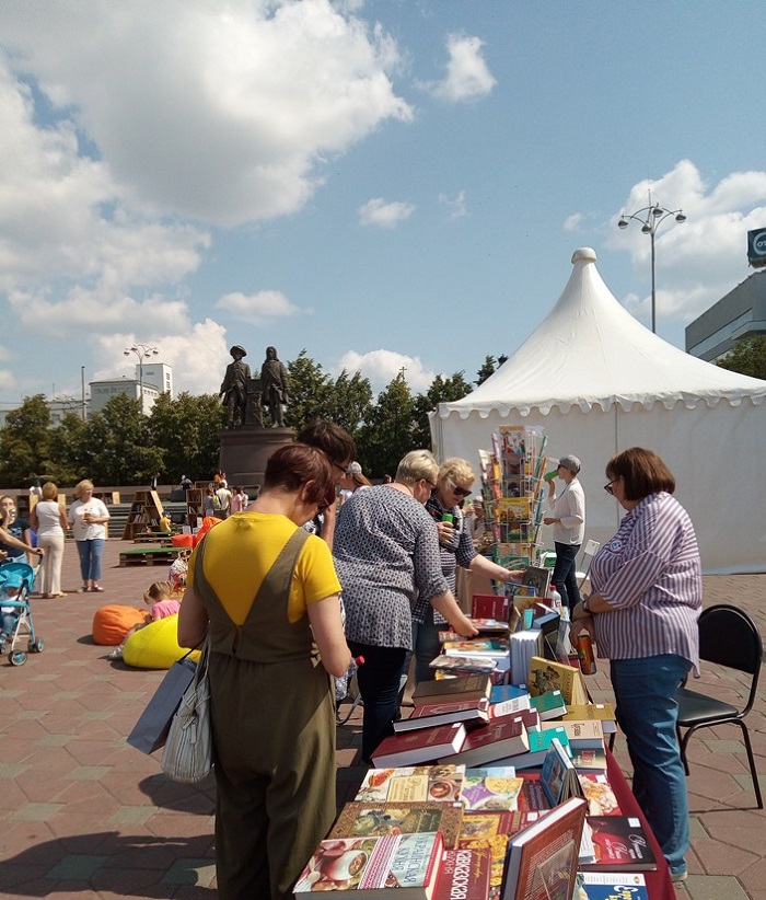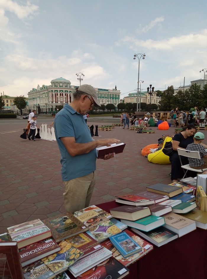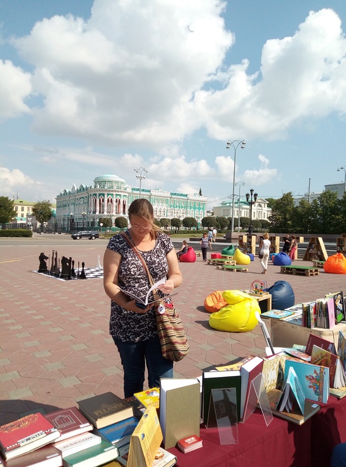 Работа с книгой на улицах города в летний период уже стала традицией для многих библиотек города Екатеринбурга и Свердловской области. Не стала исключением в этом событии и наша библиотека. Так, в прошлые выходные, 27-28 июля 2019 года, Свердловская областная межнациональная библиотека приняла участие в работе «Читального зала под открытым небом» возле памятника основателям города Екатеринбурга Василию Татищеву и Вильгельму де Генину.