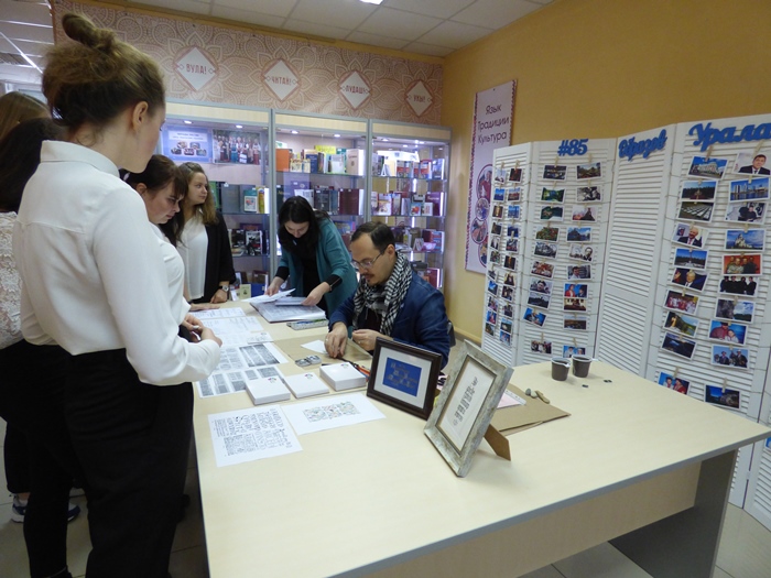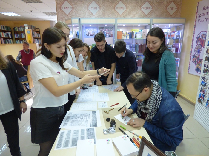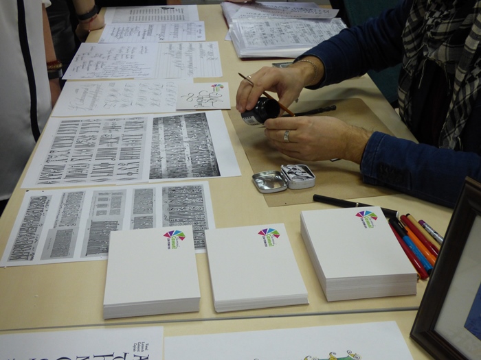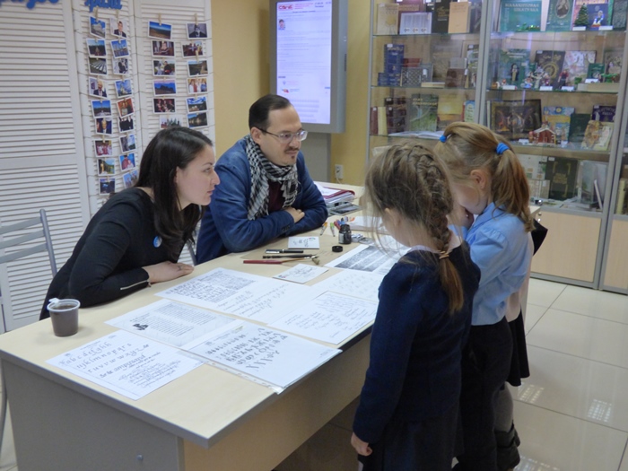 В День чтения можно не только читать! В библиотеке были проведены мастер-классы. Уже знакомая вам Школа Каллиграфии Льва Либермана провела мастер-класс по кириллической каллиграфии – настоящие мастера каллиграфии рассказали о разных шрифтах и помогли подписать памятные открытки.