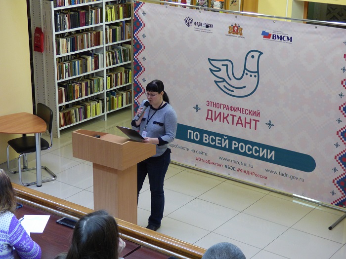 1 ноября 2019 года Свердловская областная межнациональная библиотека в четвертый раз присоединилась к Международной акции «Большой этнографический диктант». Акция проходит в каждом из 85 регионов России и в 38 зарубежных странах и позволяет оценить уровень этнокультурной грамотности населения, их знания о народах, проживающих в России. Он привлечет внимание к этнографии как науке, занимающей важное место в гармонизации межэтнических отношений.