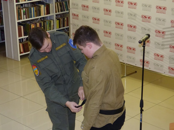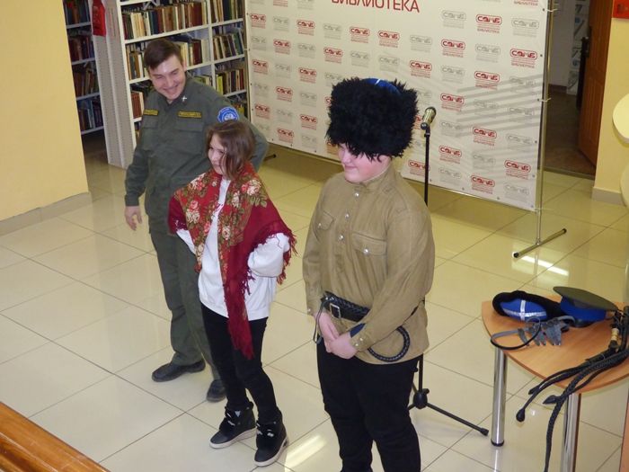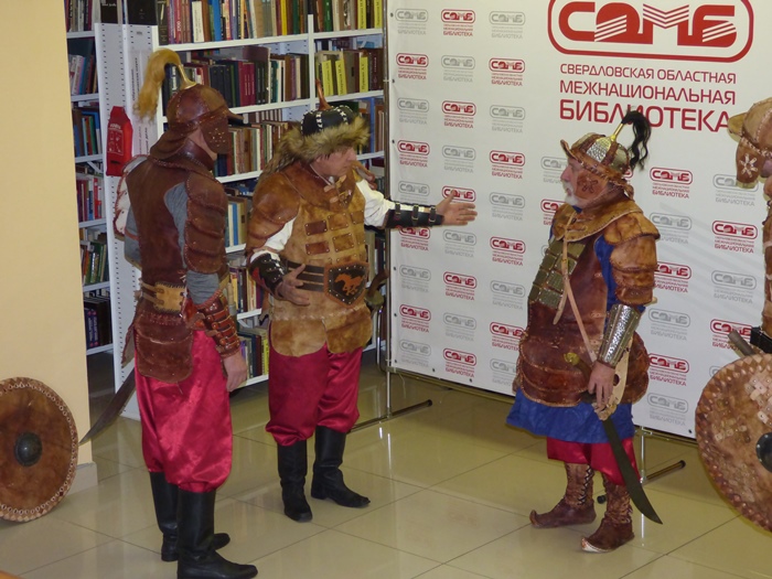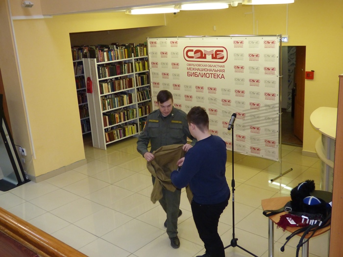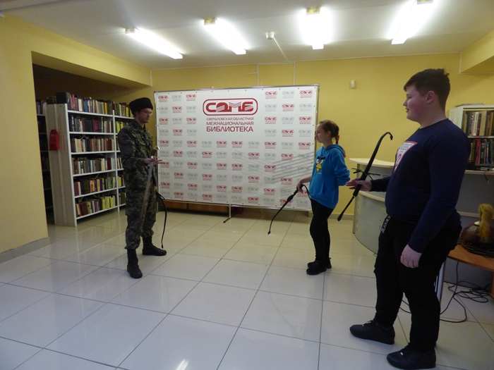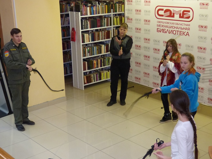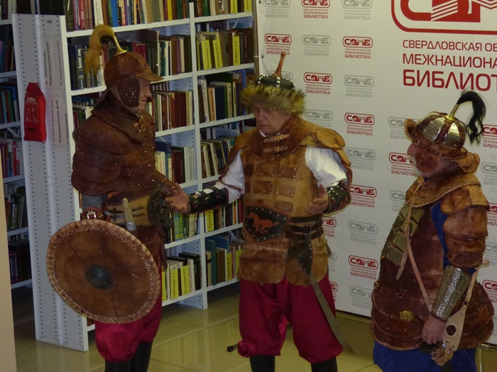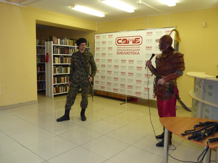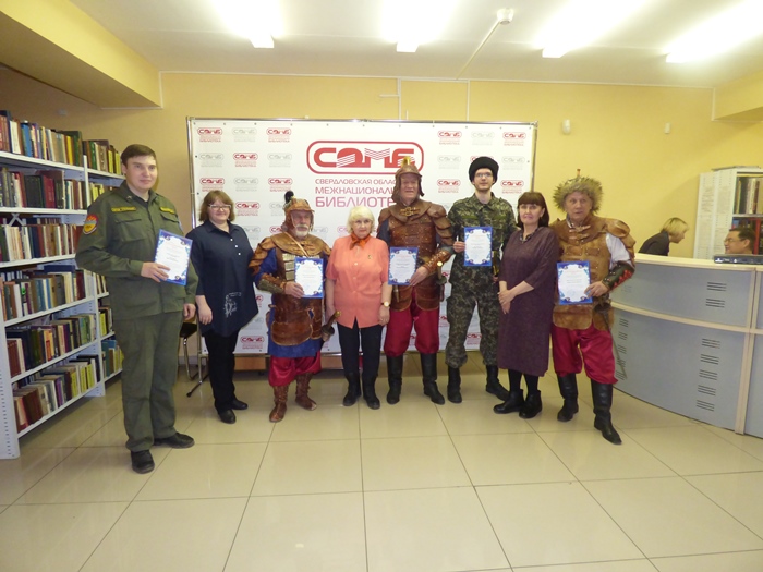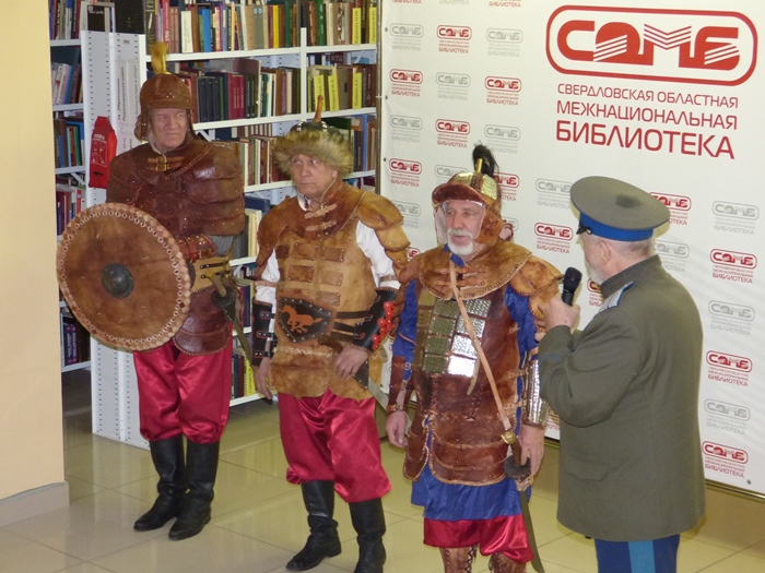 12 декабря в Свердловской областной межнациональной библиотеке казаки провели культурно-исторический квест "Путь Ермака" для школьников. Все участники мероприятия стали свидетелями исторической реконструкции, воссоздавшей времена покорения Сибири Ермаком. Анатолий Владимирович Потанин, старейшина станицы "Сухоложская", увлекательно рассказал о Сибирском походе Ермака в 1581—1585 годах, а руководитель военно-исторического клуба "Феникс" Владимир Матлашевский продемонстрировал мастерство фланкировки. Участники смогли сфотографироваться с казачьей амуницией.