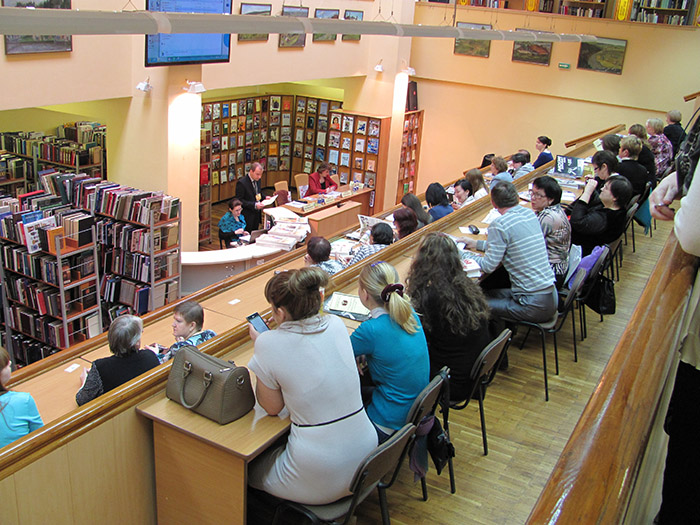 Заведующая читальным залом Татьяна Викторовна Шурманова познакомила гостей с яркими именами и современными тенденциями в современной татарской литературе. Также участникам мероприятия был предложен к просмотру буктрейлер по книге современного татарского писателя Наиля Измайлова «Убыр».