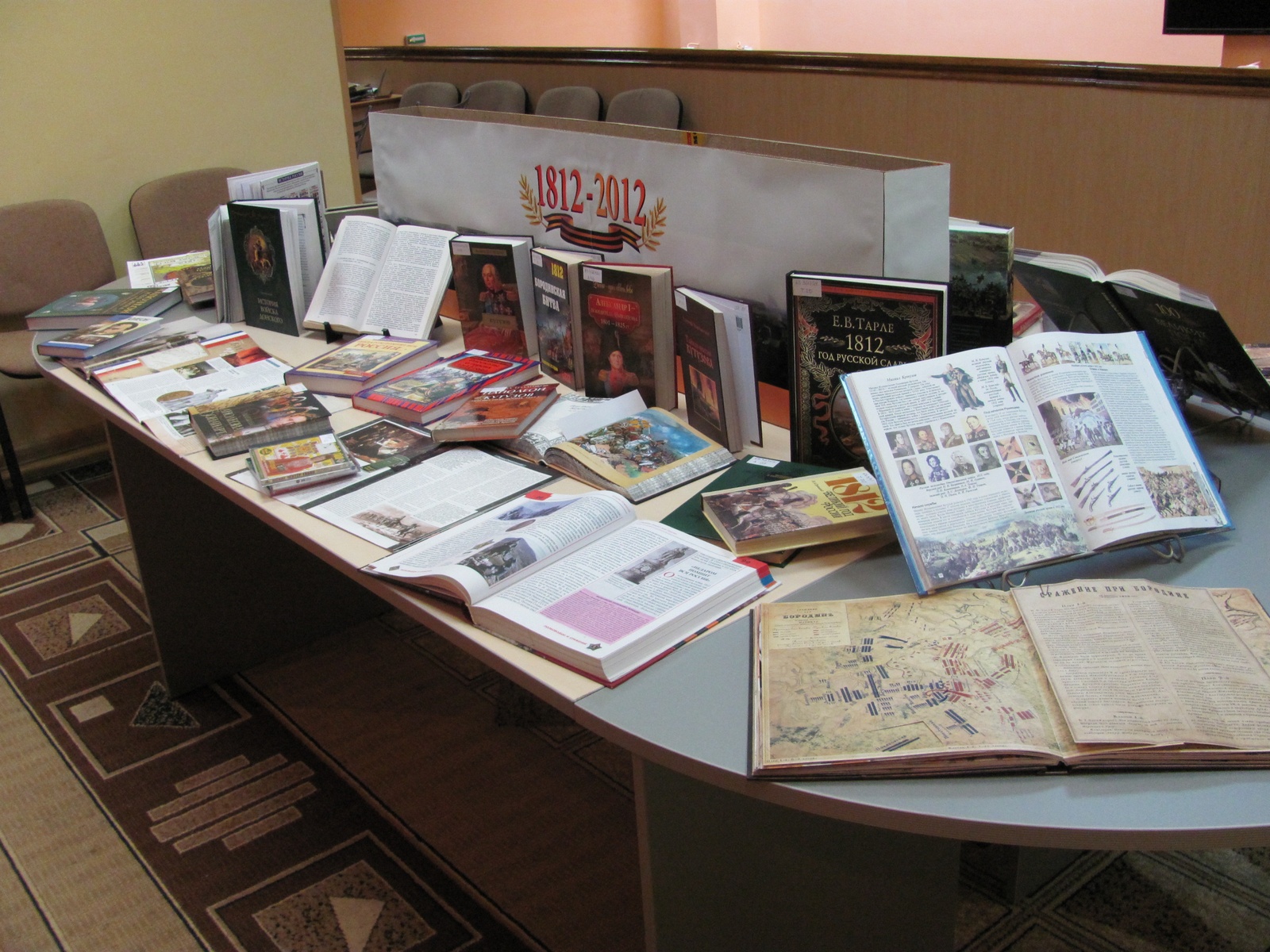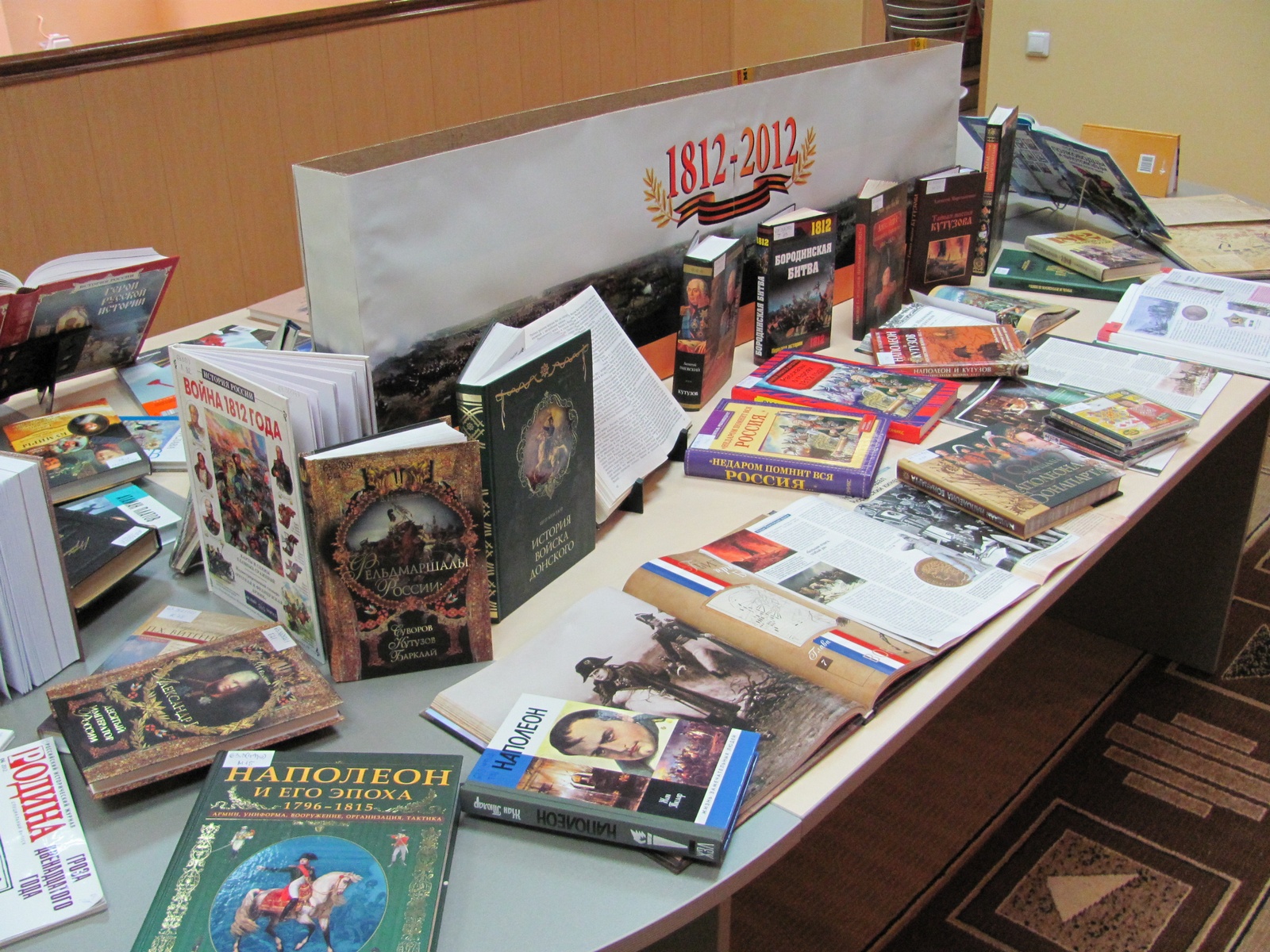 Книжная выставка, приуроченная к 200-летию Отечественной войны 1812 года, раскрывает перед читателями героические страницы российской истории. В летописи нашей страны эта справедливая война занимает особое место. В ходе неё с большой силой был подтвержден закон, что народ, ведущий справедливую, освободительную войну, получает огромные моральные и духовные преимущества. Бородинское сражение — важнейший этап всей кампании. Наполеон признавался: «Из всех моих сражений самое ужасное то, которое я дал под Москвой. Французы в нём показали себя достойными одержать победу, а русские стяжали право быть непобедимыми...».