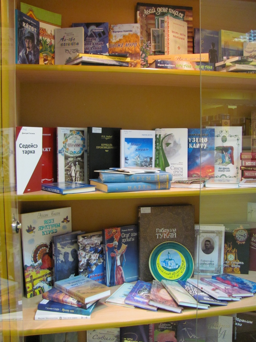 Говоря о татарской литературе, нельзя не упомянуть Мусу Джалиля. Томик его произведений из пятитомного собрания сочинений дополняет экспозицию.