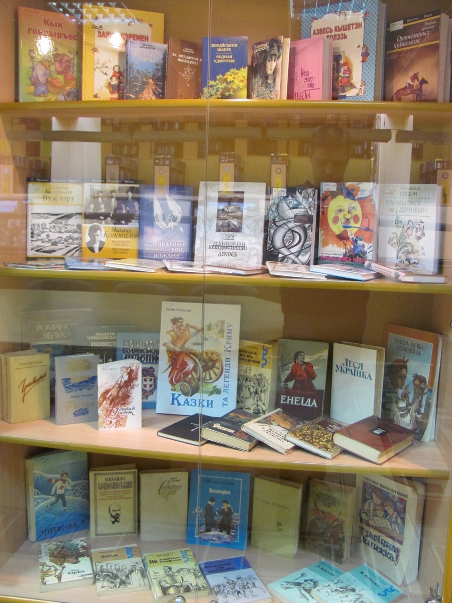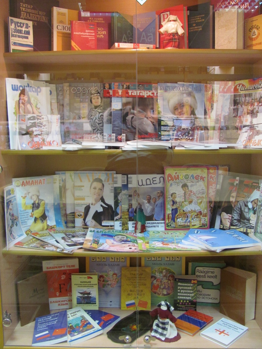 Центральную часть нашей экспозиции занимают журналы на национальных языках. Они имеют как художественную («Агидель», «Казан Утлары», «Идель», «Чилисема»), так и общественно-политическую направленность («Сююмбике», «Башкортостан кызы», «Татарстан», «Алеся», «Аманат»). Есть среди них и детские журналы, такие как казахский «Айгелек», башкирский «Акбузат», татарский журнал для молодёжи «Ялкын». Всего в библиотеку приходят 28 журналов и газет на языках народов Урала (татарском, марийском, белорусском, казахском, башкирском, удмуртском, мордовском).
